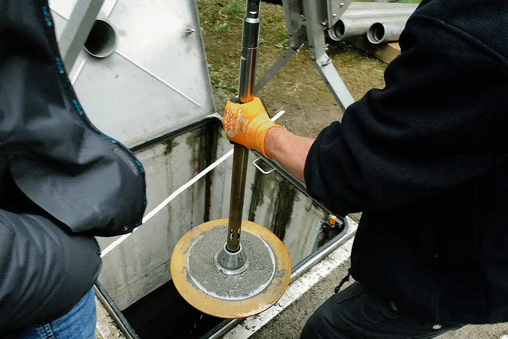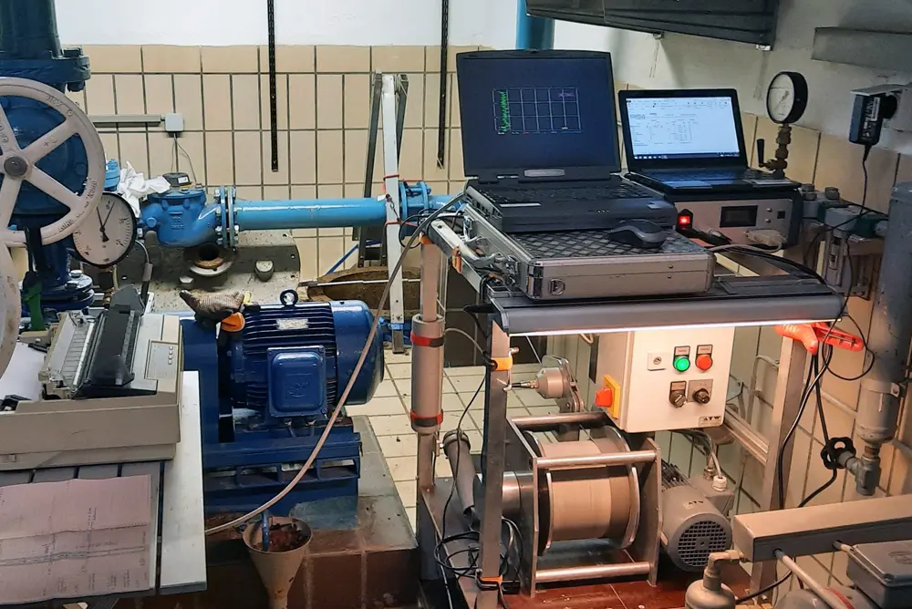Ablauf einer Kontrollmessung vor Regenerierung eines Trinkwasserbrunnen mit Bewertung der Messergebnisse vor Ort